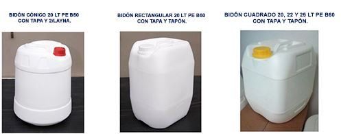 - Bidones cuadrados y redondos de 18 Lt y 20 Lt B50.